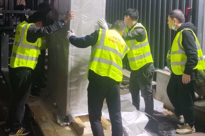 在設(shè)備進(jìn)場(chǎng)時(shí),正趕上太原市連日降雨、氣溫驟降,為了不耽誤項(xiàng)目進(jìn)度,項(xiàng)目組決定在保證安全的前提下連夜冒雨作業(yè)。微信群內(nèi)的消息剛一發(fā)出,“收到”“明白”“馬上到”,一條條簡(jiǎn)短的回復(fù)從手機(jī)上彈出,大家無一例外的準(zhǔn)時(shí)出現(xiàn)在項(xiàng)目現(xiàn)場(chǎng),卸貨、搬運(yùn)、拆包,期間馬不停蹄地投入工作。團(tuán)隊(duì)齊心協(xié)力,奮力拼搏,確保了設(shè)備按時(shí)進(jìn)場(chǎng)。初冬的寒風(fēng)陣陣襲來,冰冷的雨水和汗水交織在一起,描繪出團(tuán)隊(duì)奮戰(zhàn)四季度的最美畫卷。