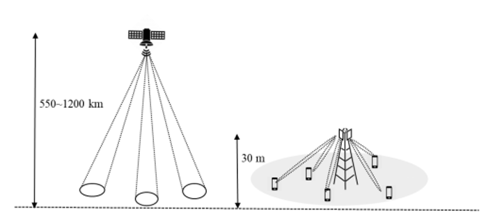 圖 3 衛(wèi)星波束與蜂窩基站覆蓋方式對(duì)比